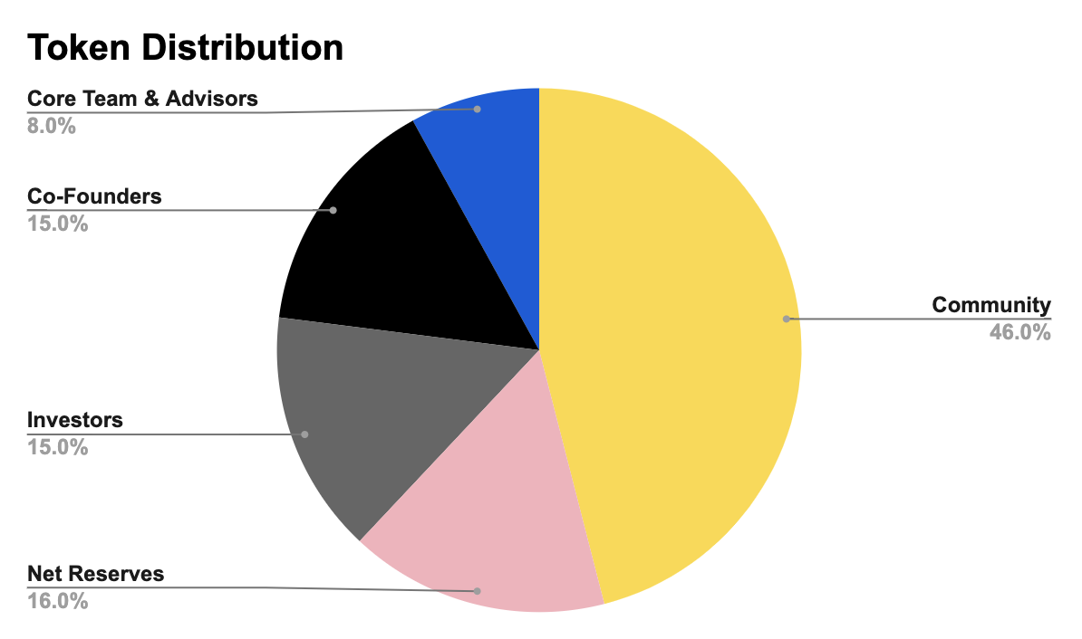* **15%** will be distributed to the **Co-Founders**, rewarding them for their hard work and incentivizing them to be responsible stakeholders